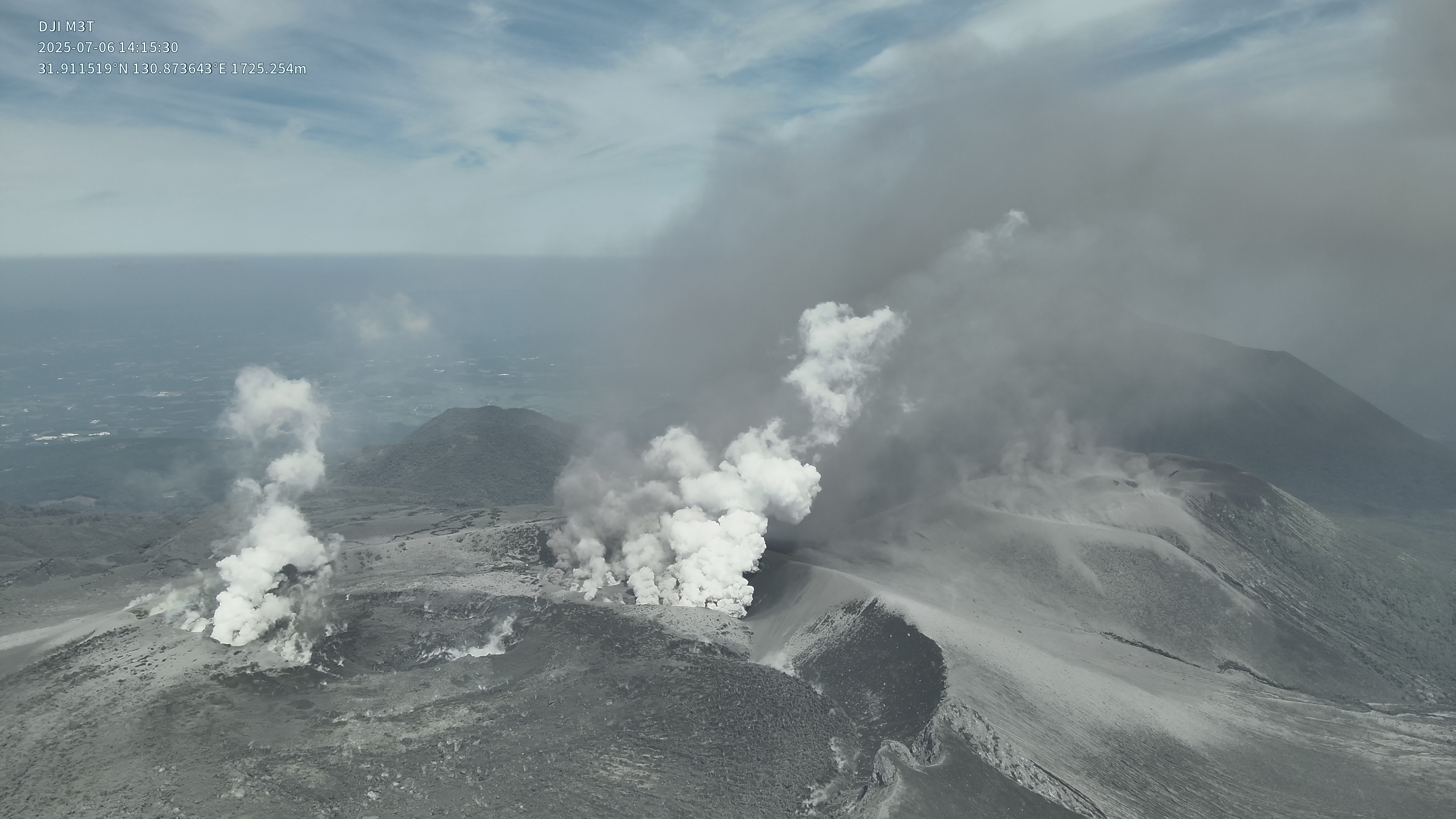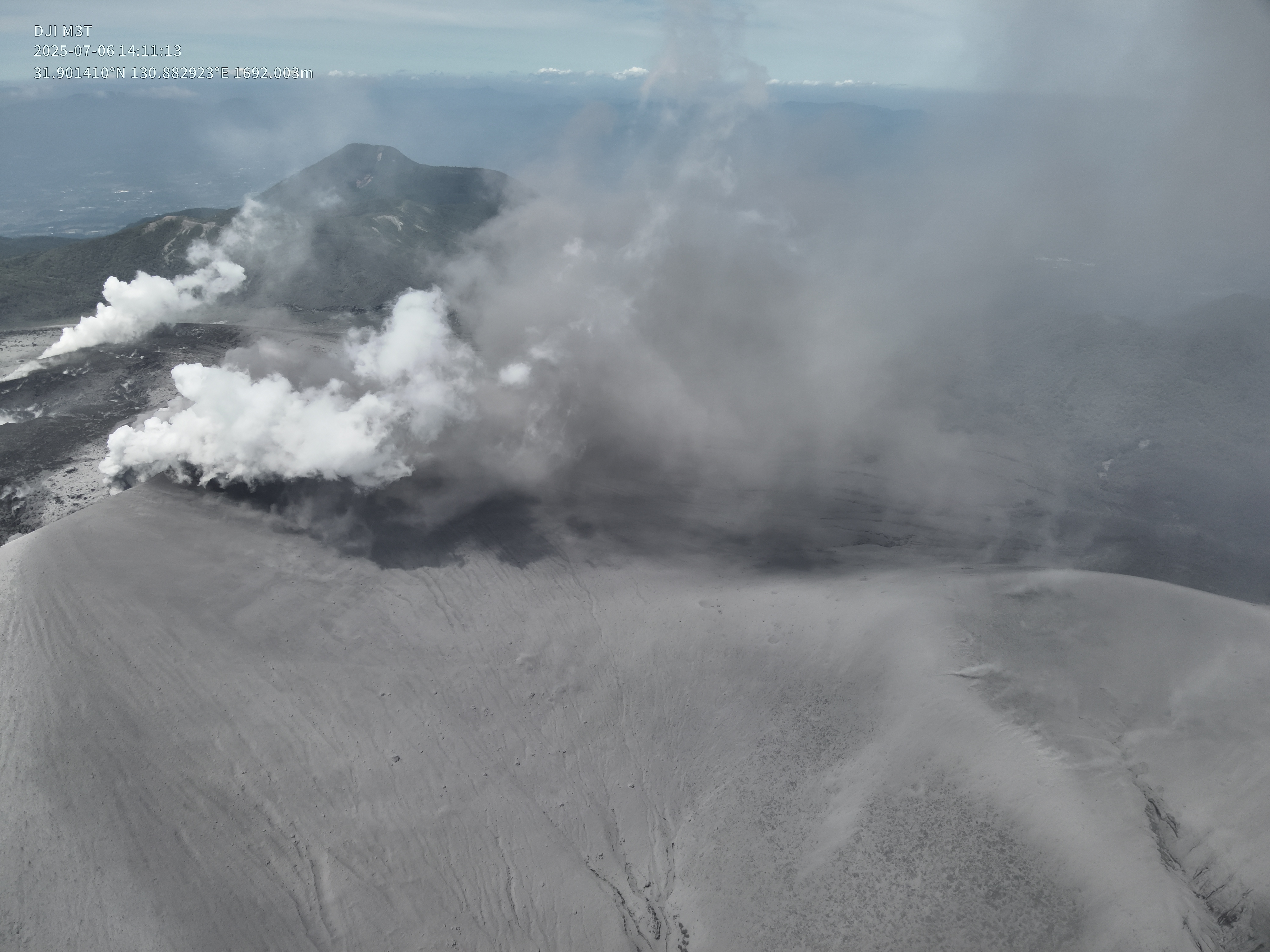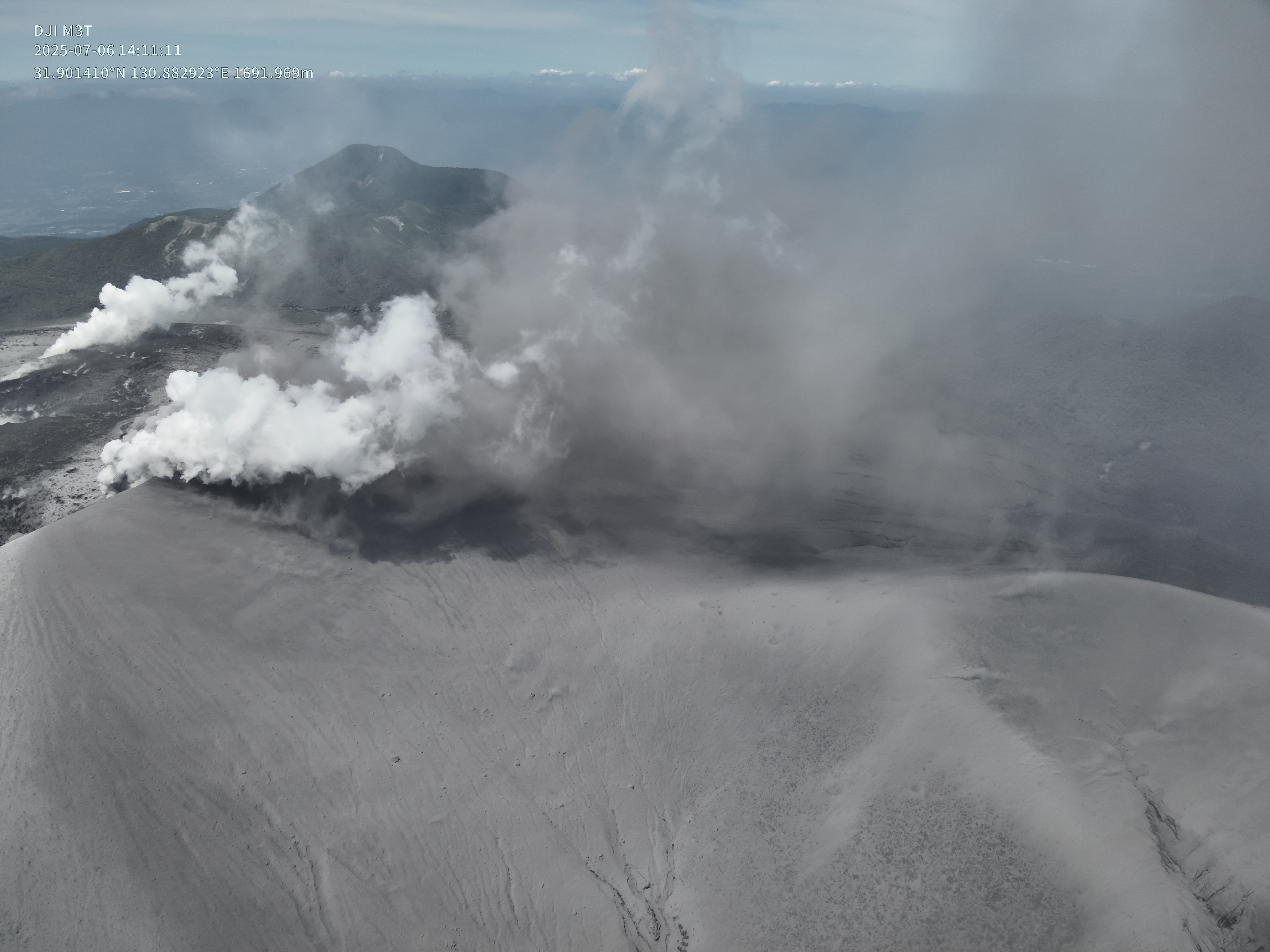 2025年7月6日13時58分噴火後の噴気の状況.黒色噴煙が白色に戻っている.