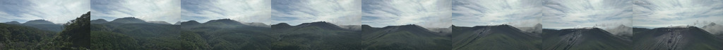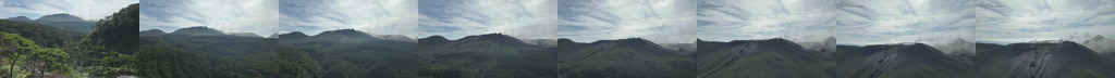 2025年7月7日の新燃岳火口噴気の状況.ドローン発着地は新湯三叉路付近.前日よりも穏やかな白色噴煙噴出となっている.