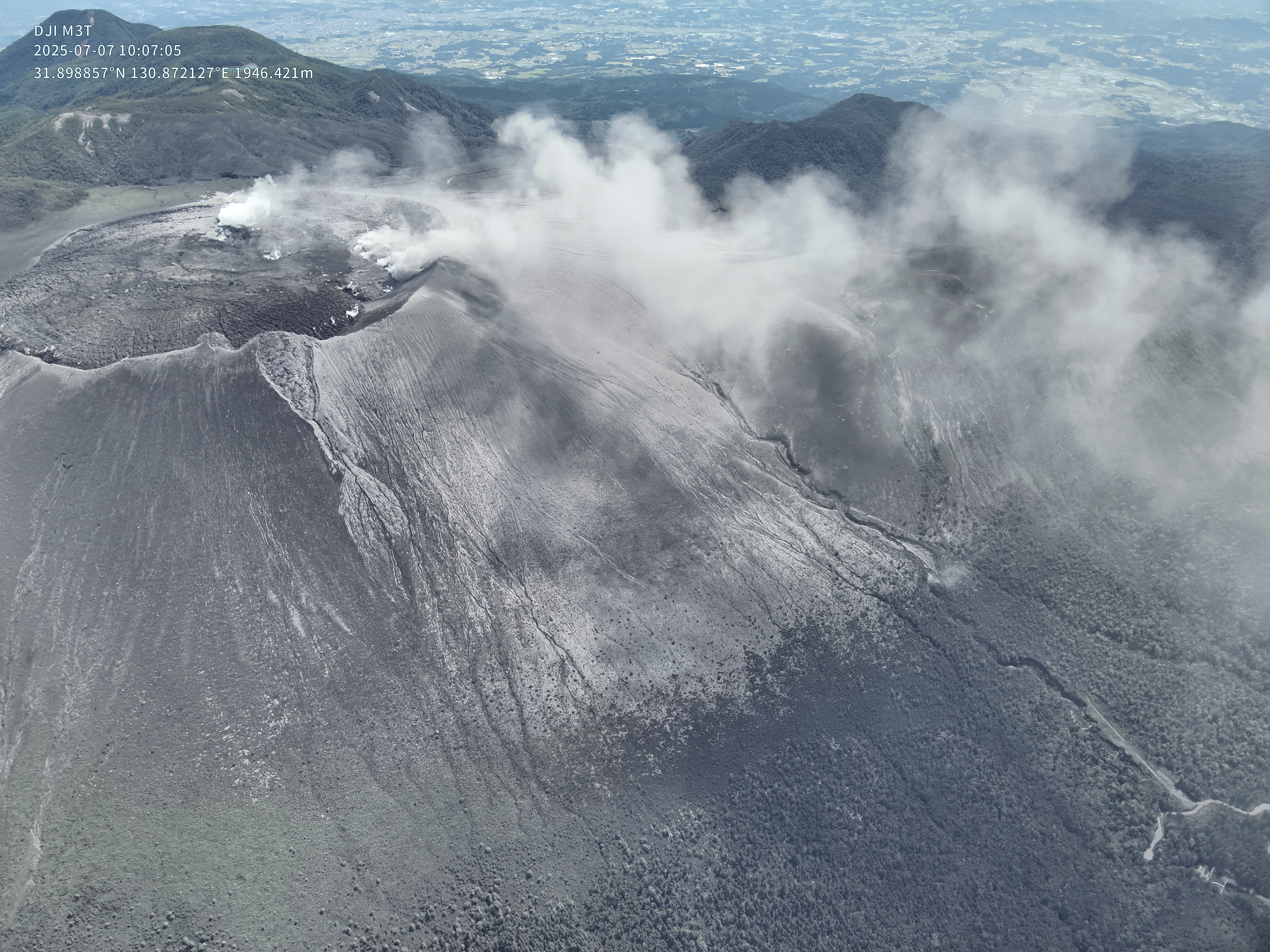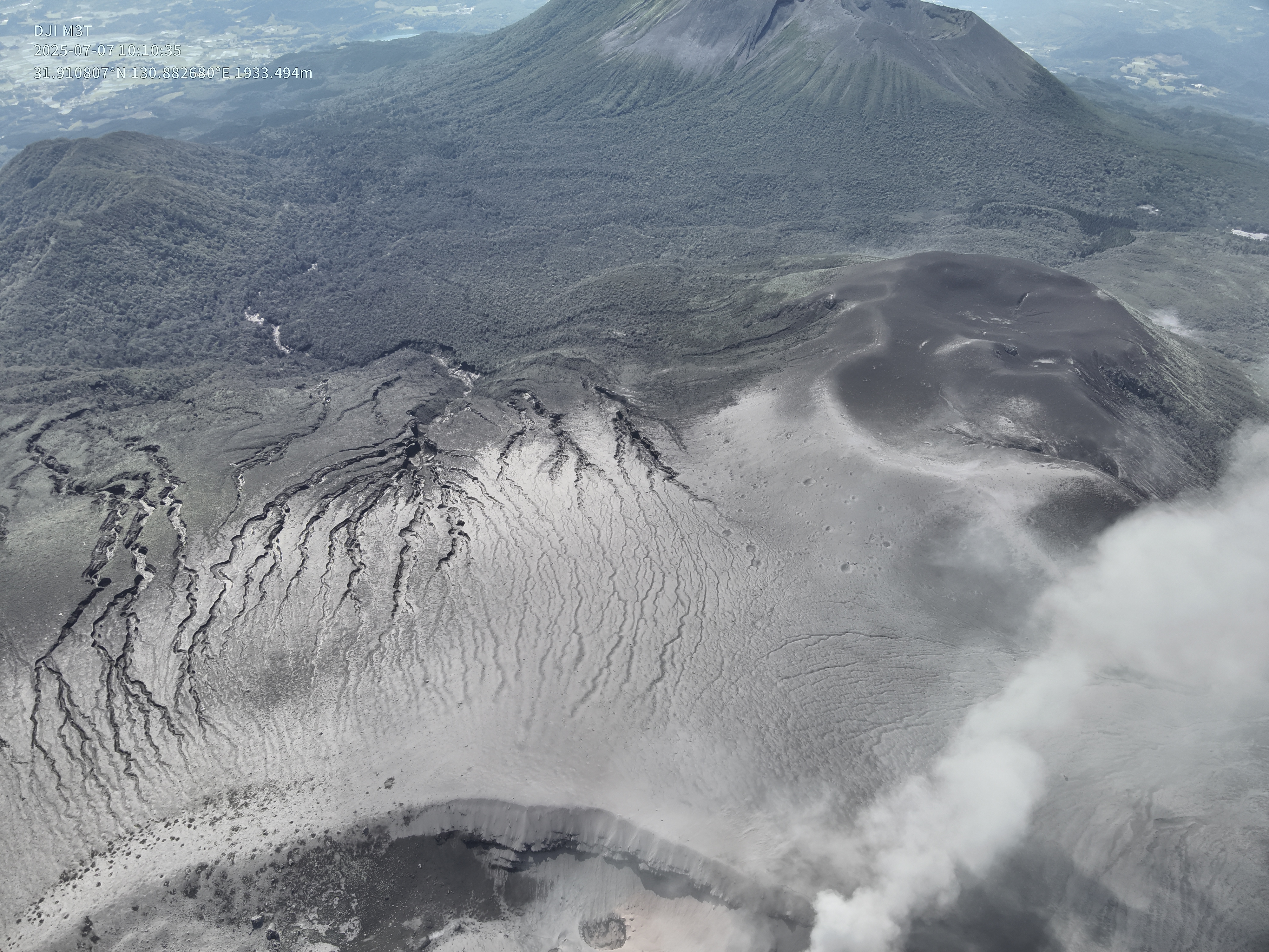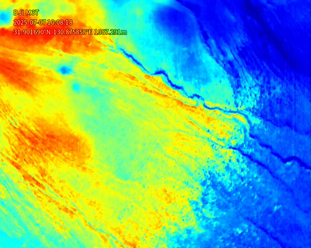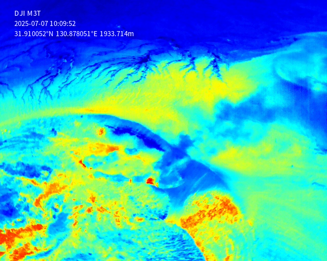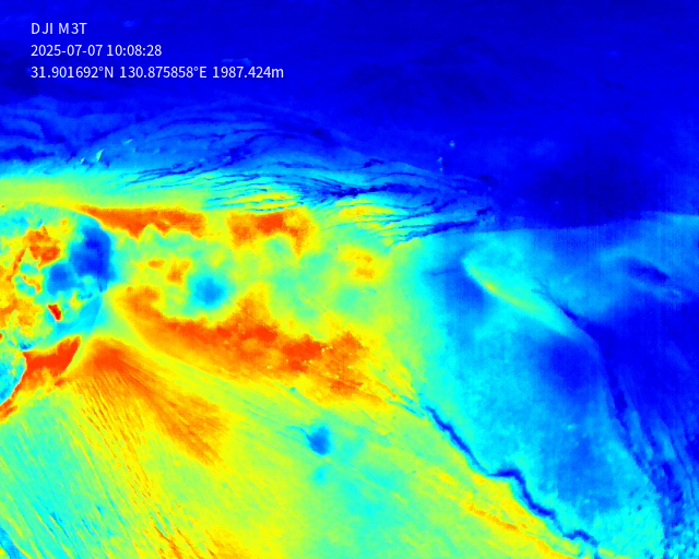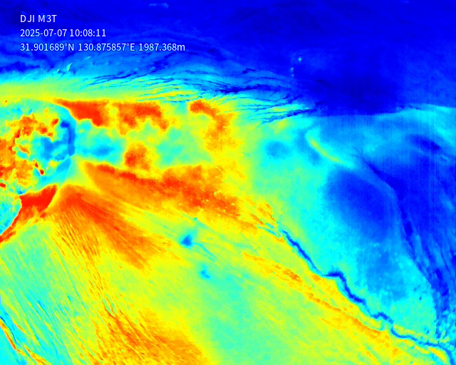 2025年7月7日の新燃岳火口噴気の状況.メイン噴気の温度状況などの確認.