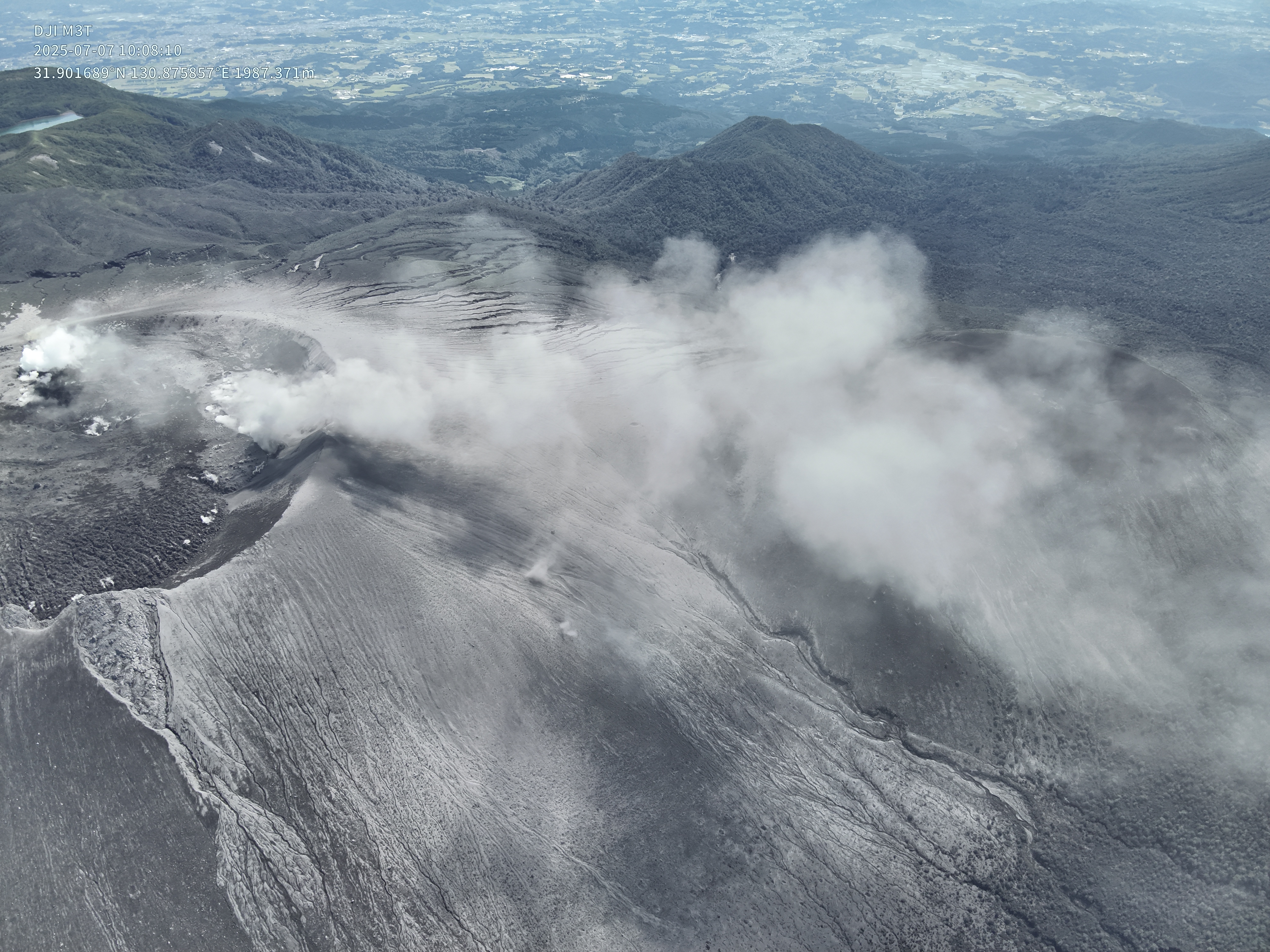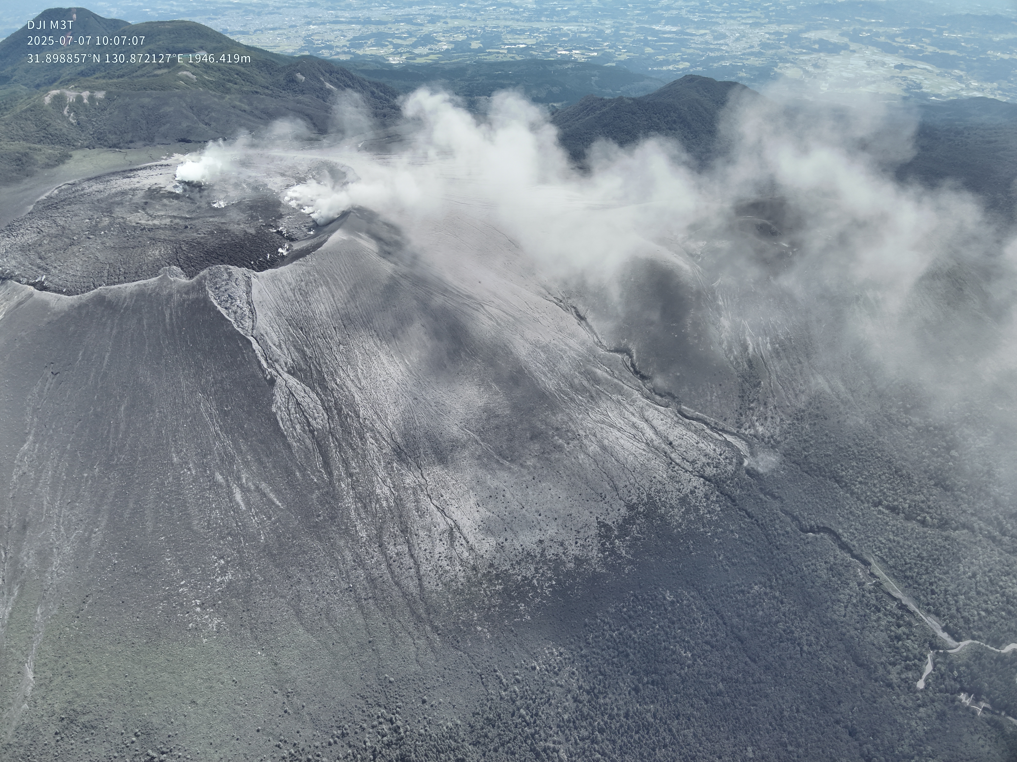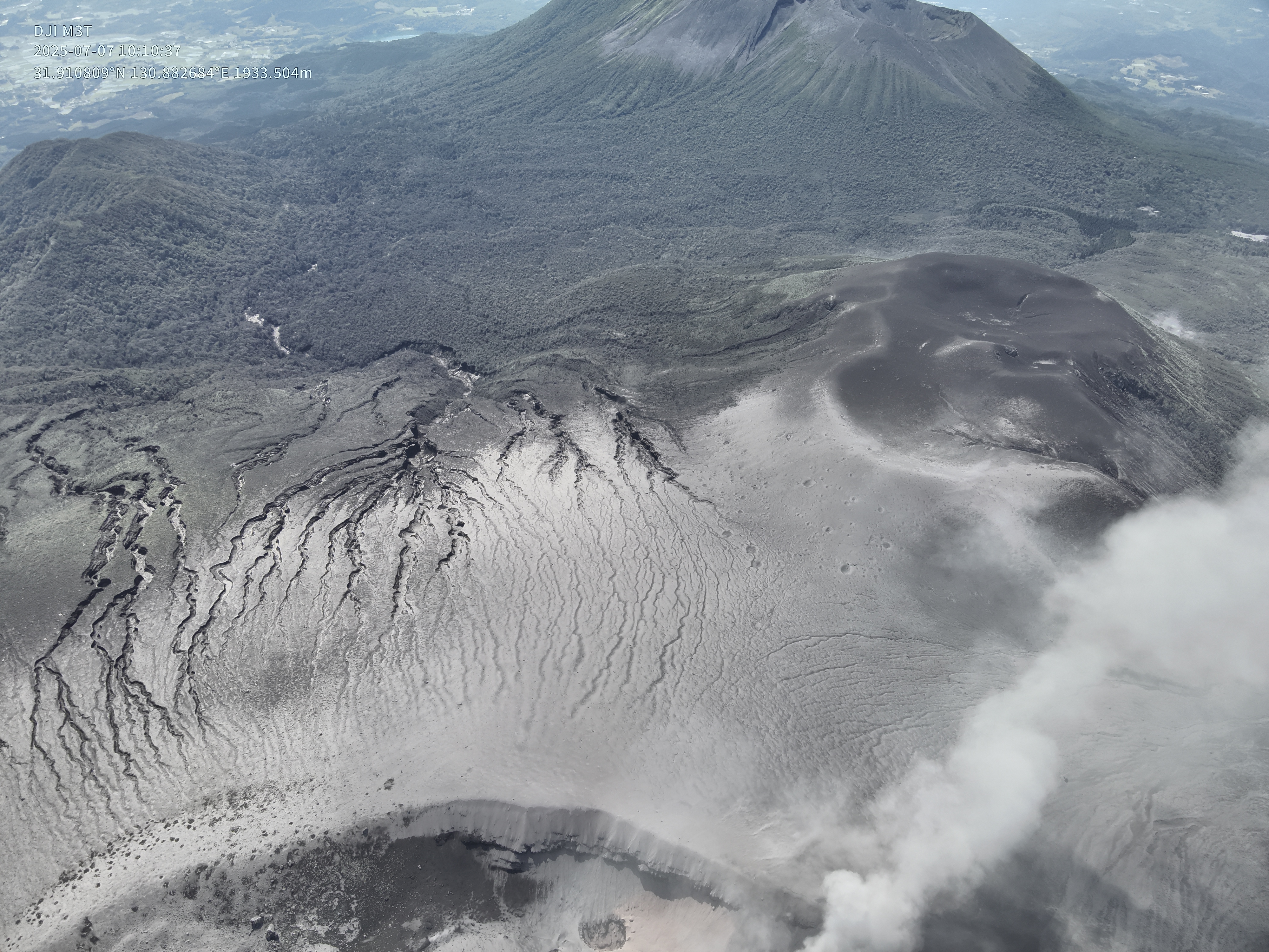 2025年7月7日の新燃岳火口噴気の状況.メイン噴気の温度状況などの確認.